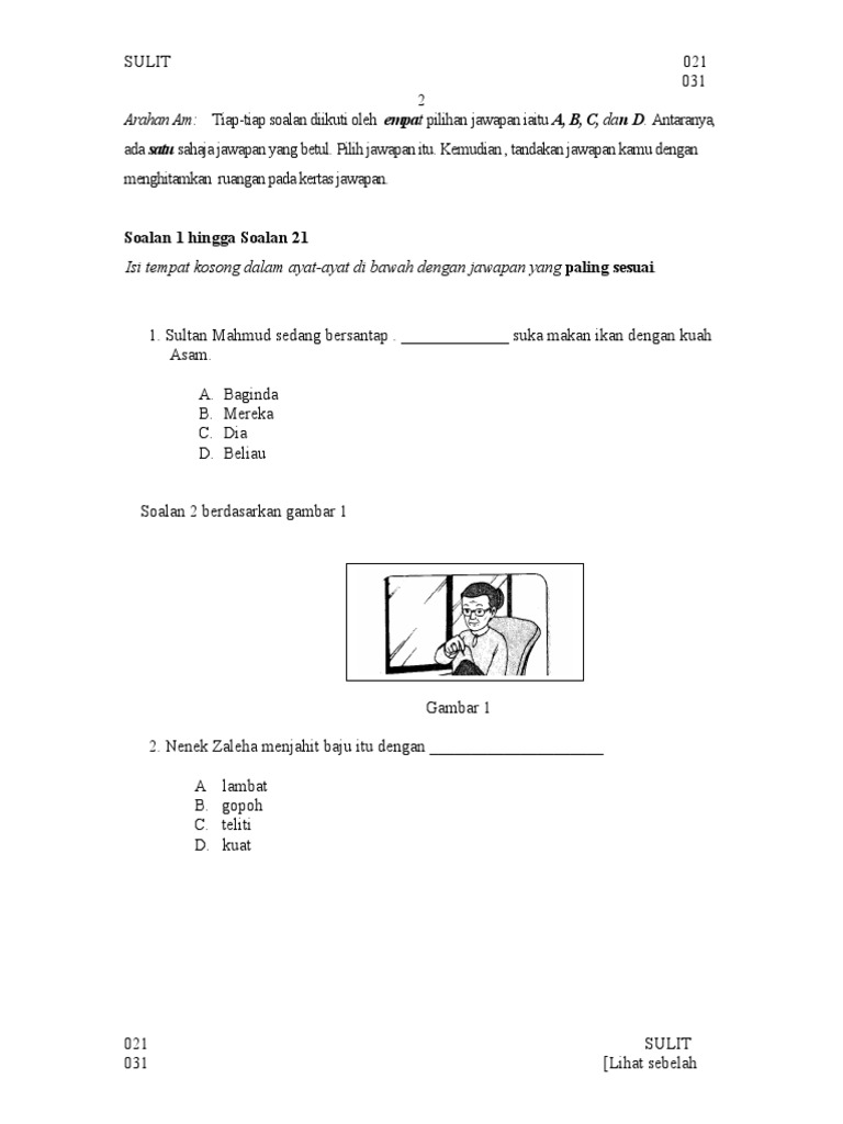 Soalan Bm Bahasa Melayu Pemahaman Tahun 5 Pdf